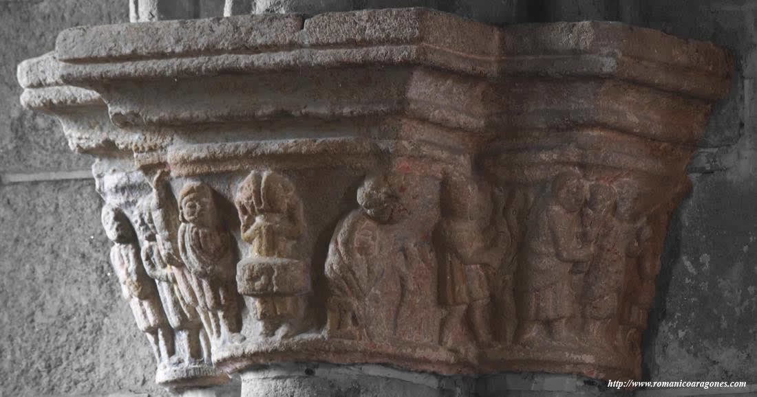 Na nave dereita, xunto á capela absidial, aparece unha columna cun capitel no que se representa un calendario agrícola. Polas súas características é único, xa que a maioría dos calendarios agrícolas medievais aparecen pintados ou esculpidos en frisos, pero nunca nun capitel.